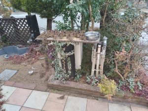 庭に出て、彼等の食卓に小鳥のフードを。