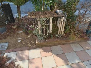 けさ、玄関ドアを開けると、スズメたちが。