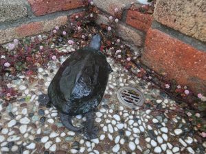 冬眠から目覚めて間がないので、亀の動きはにぶい。ゆっくり。