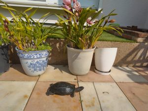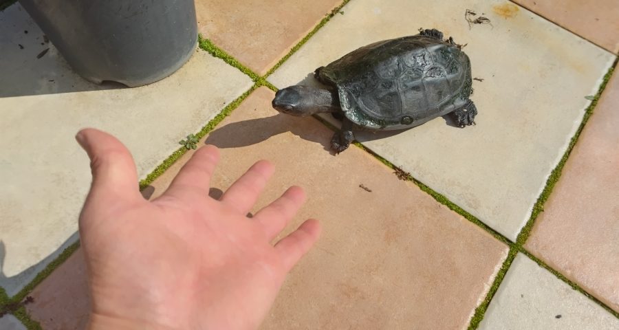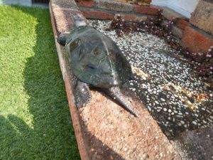 先週の土曜日に冬眠から目覚めた亀。これからはずっと土曜日の午前中、余程のことがない限り、亀の池を掃除して、彼とお遊びを予定。今年の十二月中旬、彼が再び冬眠するまで。