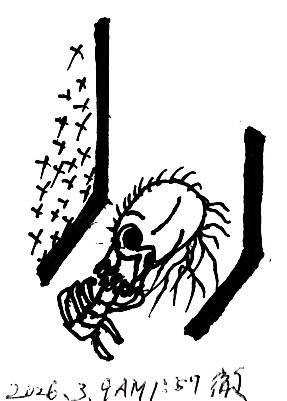 壁が迫って来るのだろうか。夕方から今までずっと、つぶされそうな気持がする。東西から挟もうとしているのか、南北からか。いや、待て。南北はあり得ない。だってこの部屋の南側はテラスになっていて、ガラス戸じゃないか。ガラスなら